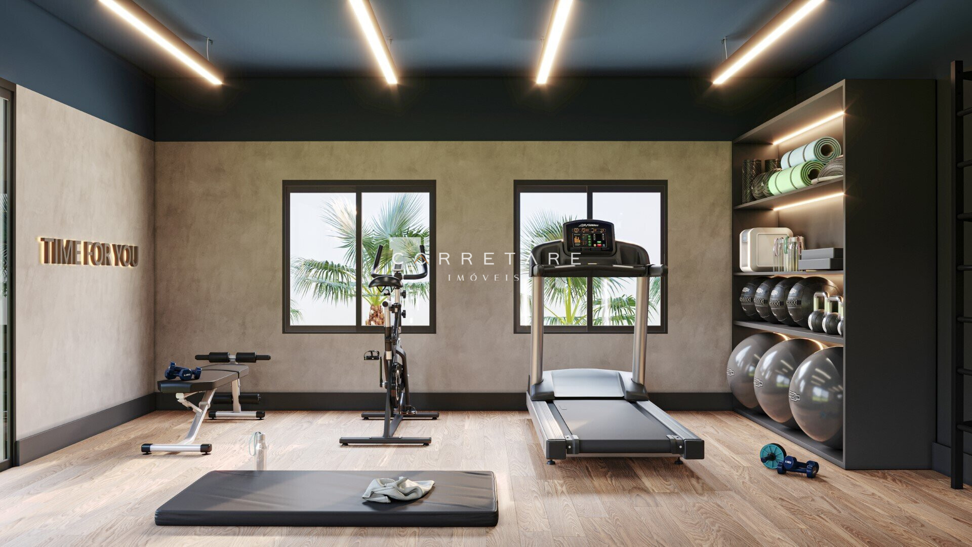 Saúde e Bem-estar: Academia interna e externa.