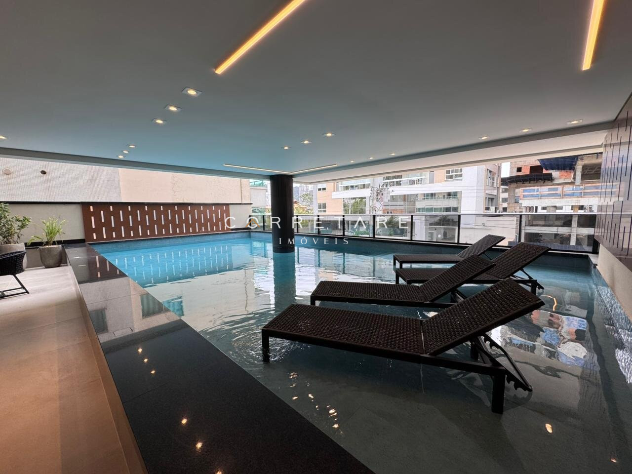 Piscina aquecida parcialmente coberta