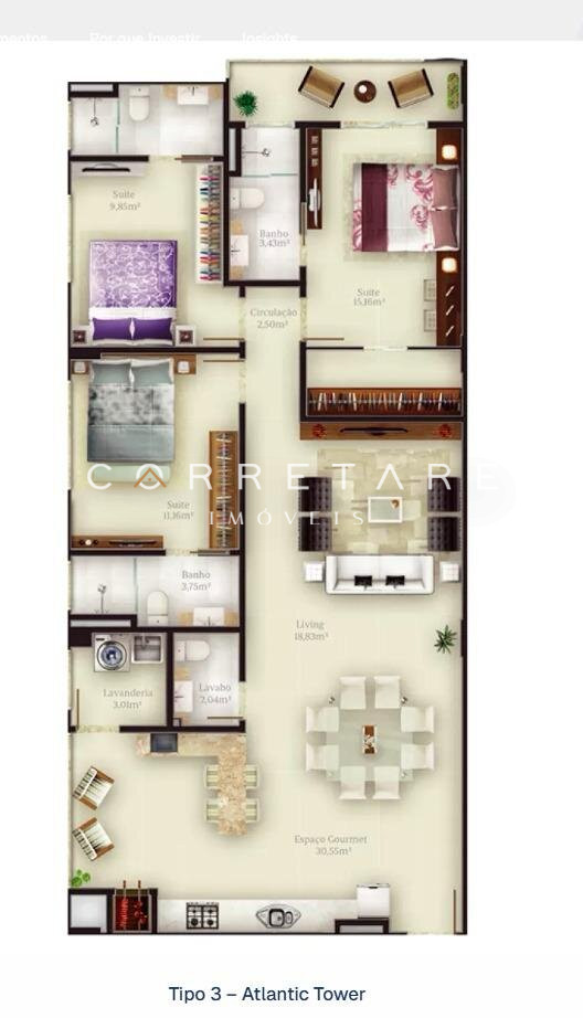 Composto por 3 suítes, conta com um amplo living integrado à sala de estar e jantar, cozinha planejada, área de serviço, lavabo e uma sacada espaçosa com churrasqueira e vista deslumbrante para o mar.