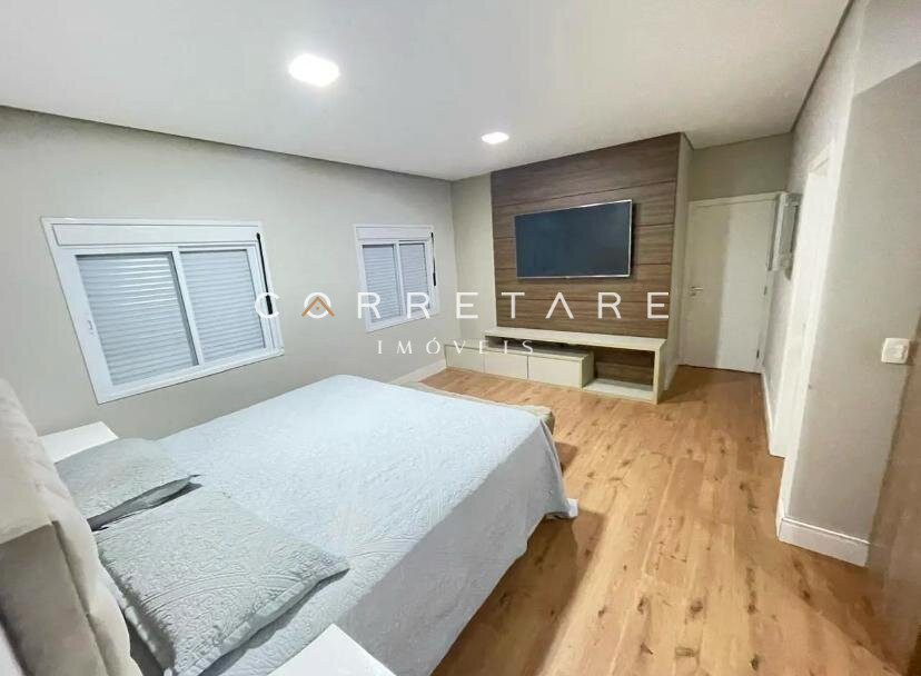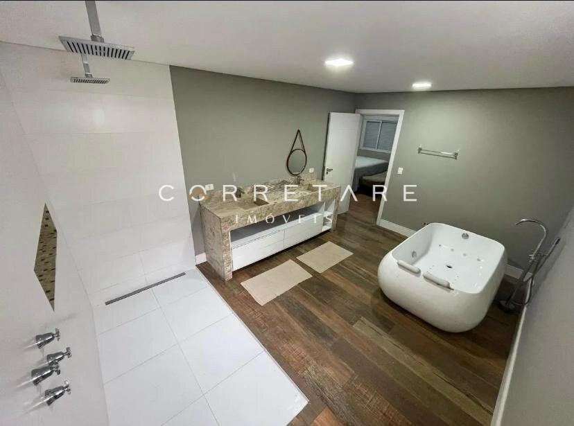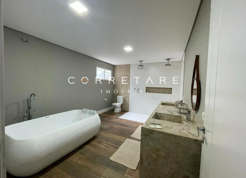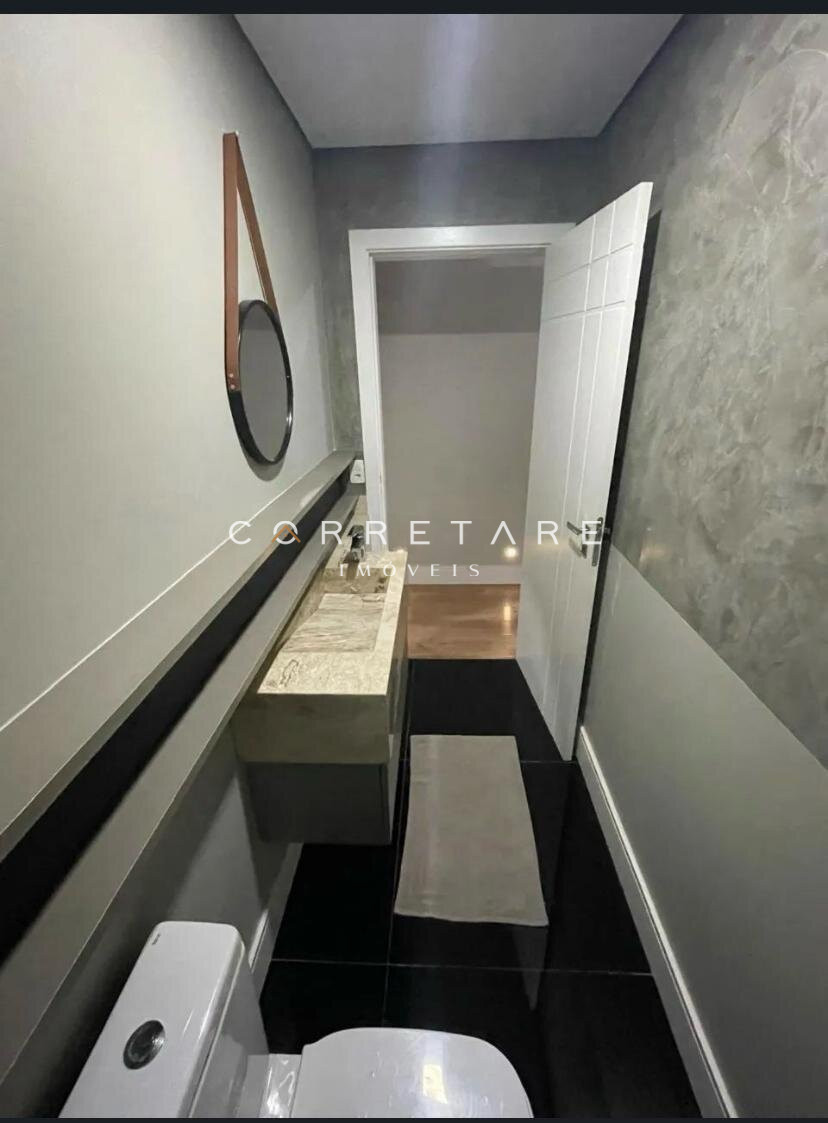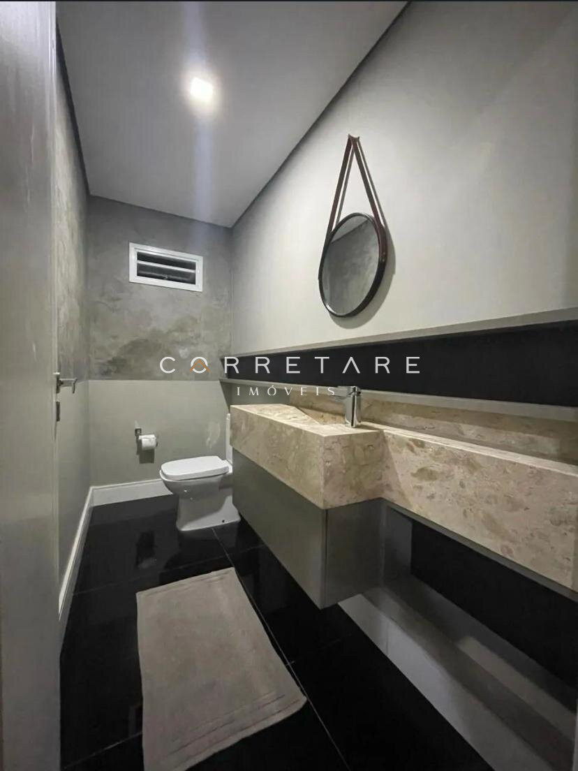 A suíte master é espaçosa, com closet espelhado e banheiro estilo spa, banheira com hidromassagem e chuveiro duplo de teto. Conta ainda com dois dormitórios, banheiro social, lavabo interno, lavabo externo, lavanderia independente e espaço gourmet com churrasqueira.