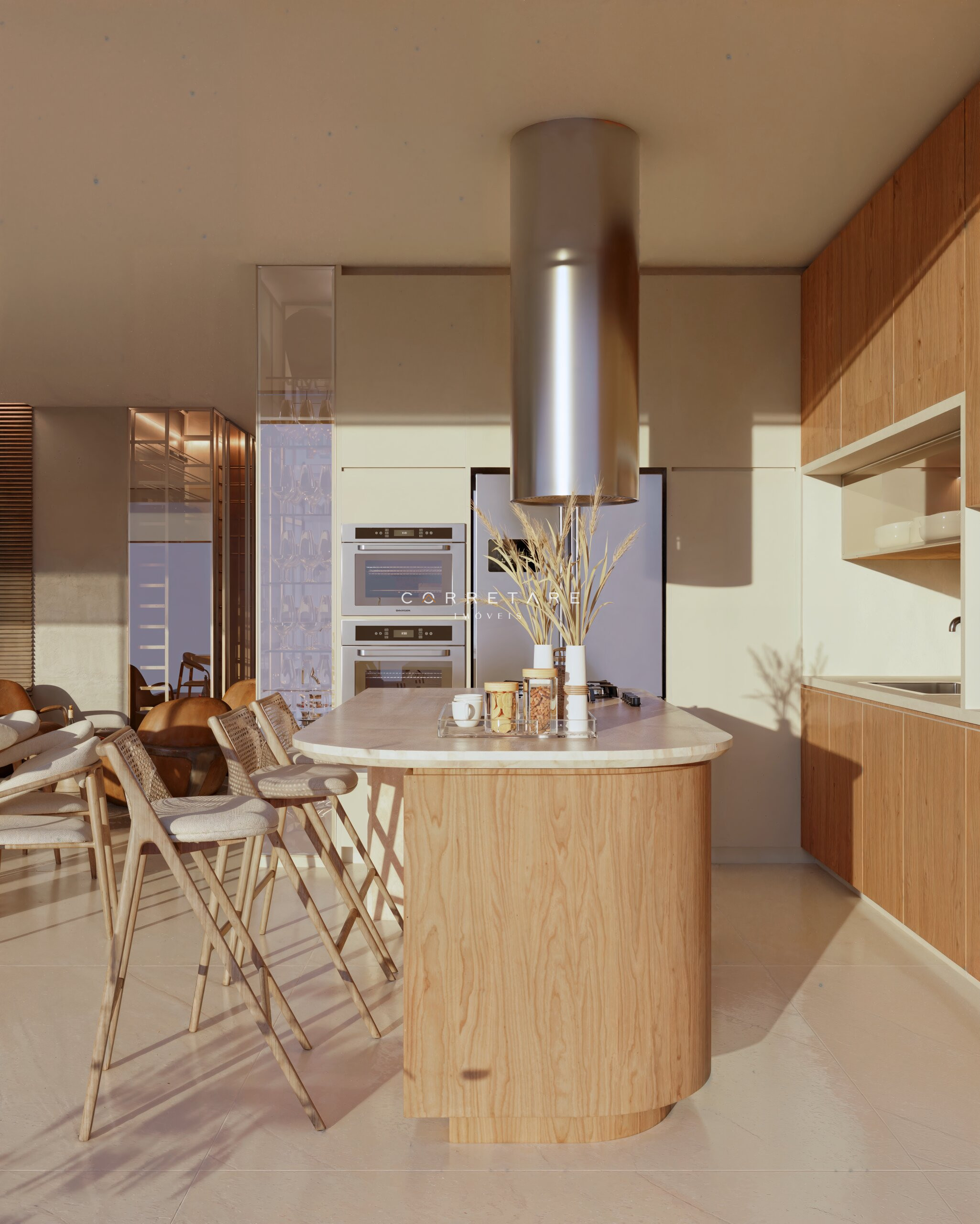 Churrasqueira e adega integradas ao espaço gourmet
