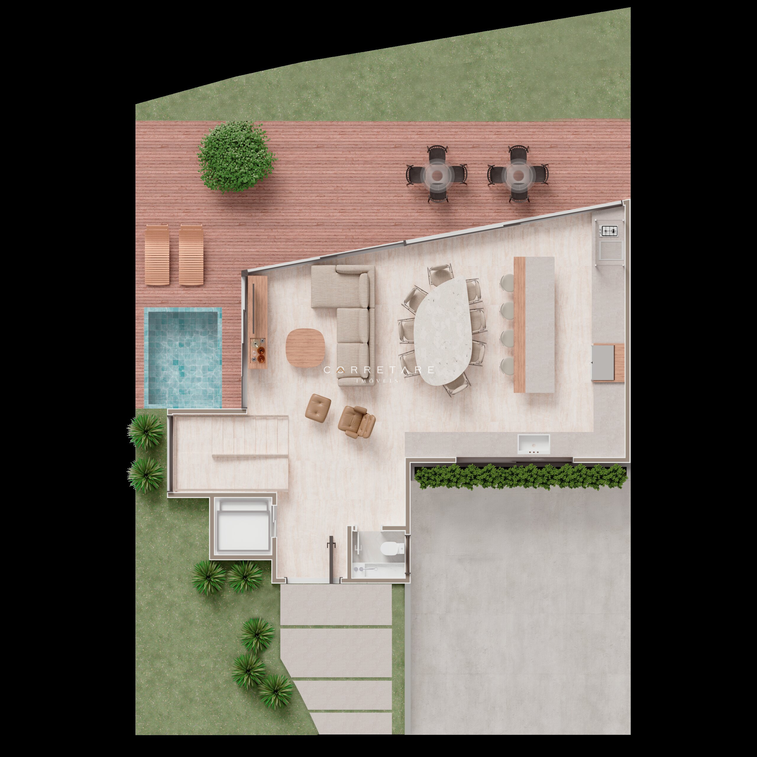 Cada residência possui plantas únicas e exclusivas a partir de 335m², com arquitetura contemporânea, ambientes amplos e integração perfeita entre sofisticação e bem-estar.