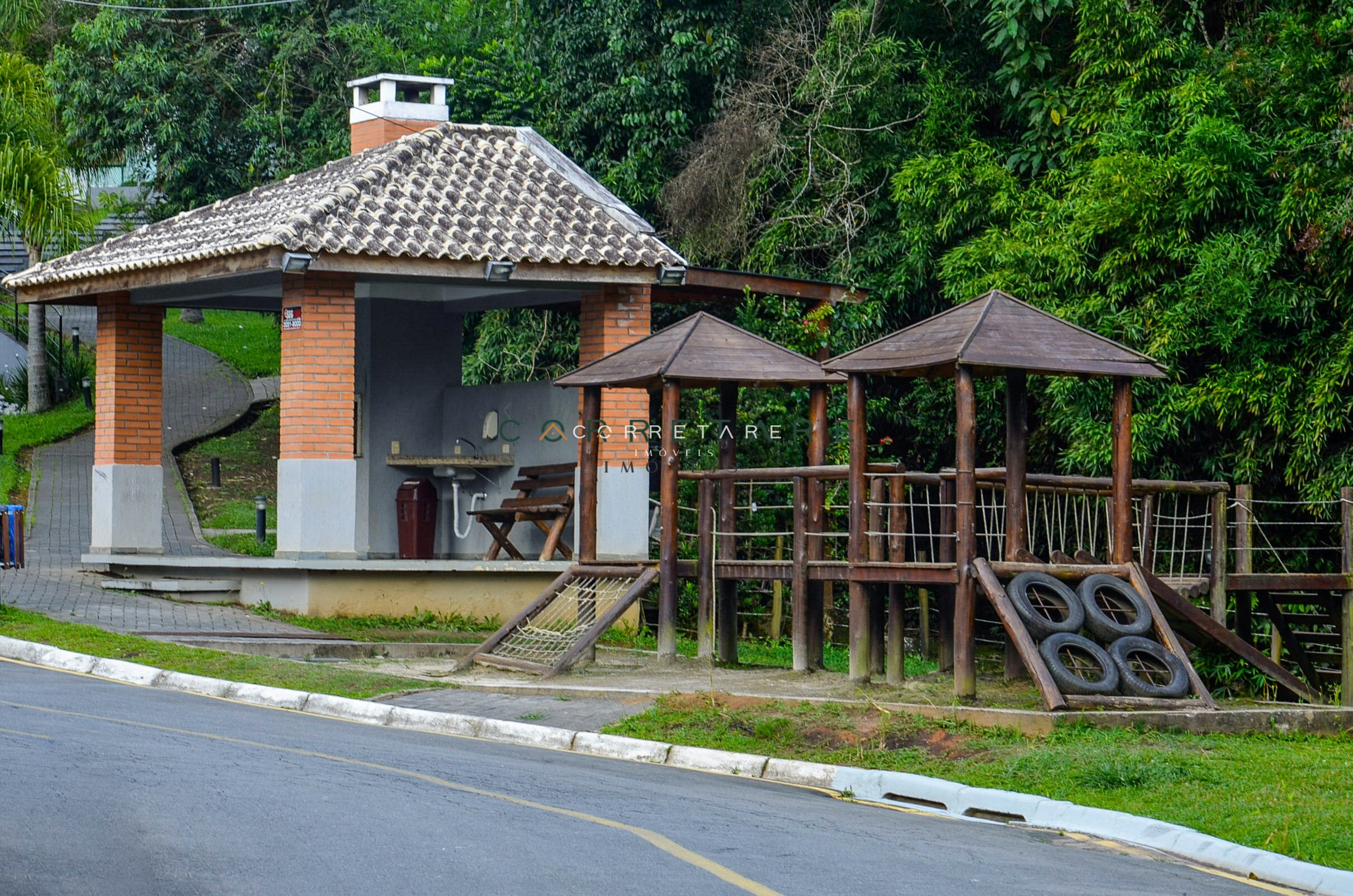 Condomínio ainda oferece toda estrutura de lazer: piscina, salão de festas, quadra poliesportiva, quiosque com churrasqueira, playground e bosque de preservação permanente.