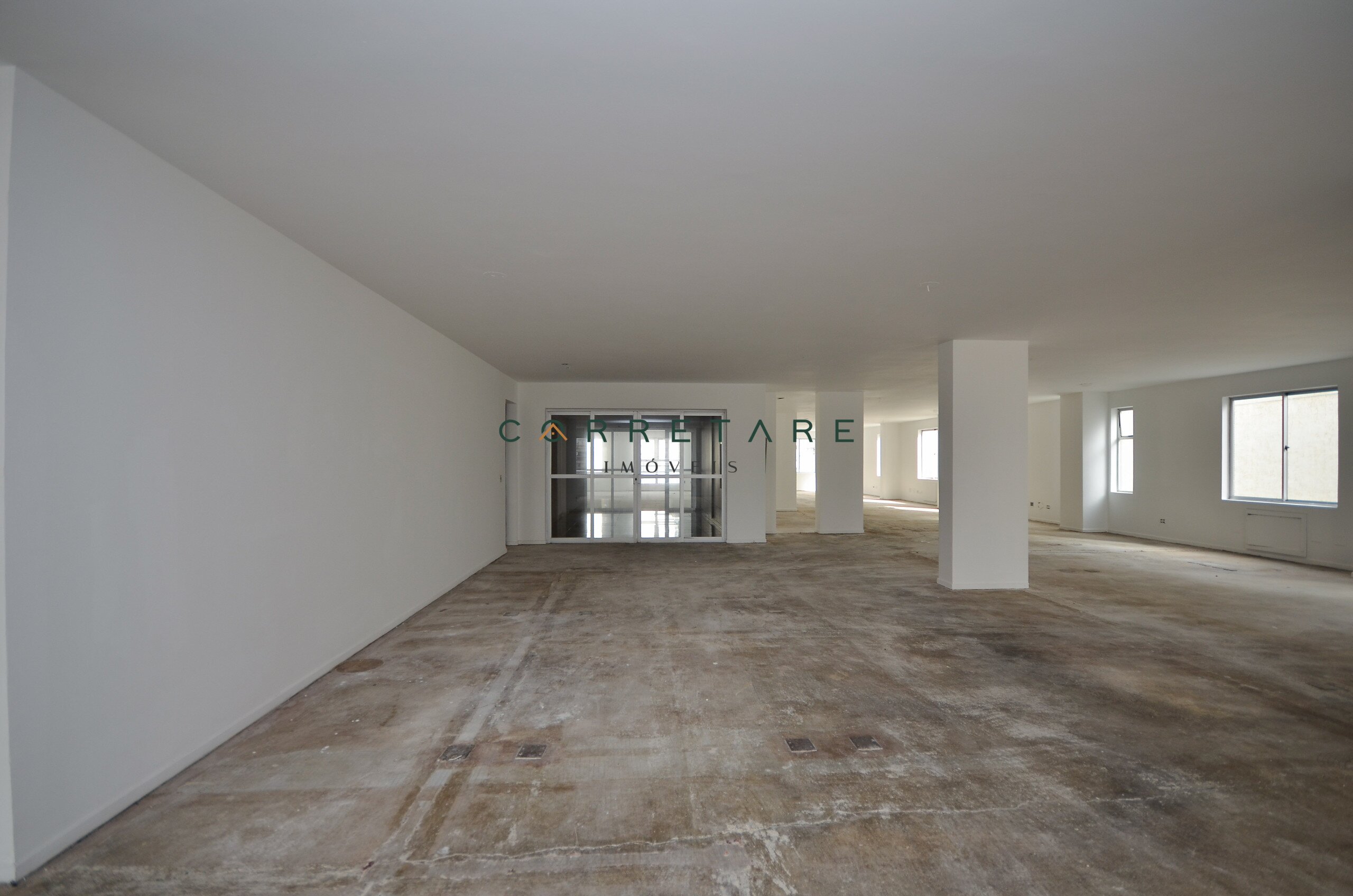 Planta versátil, com possibilidade de divisão em 2 salas independentes de aproximadamente 192 m² cada