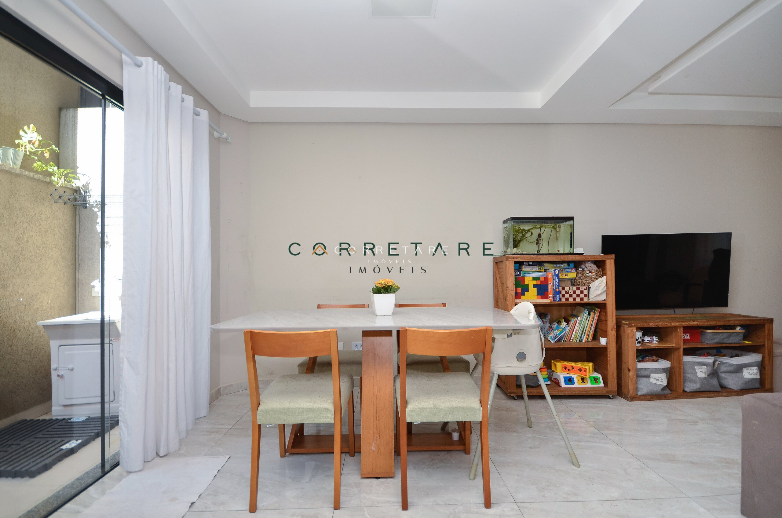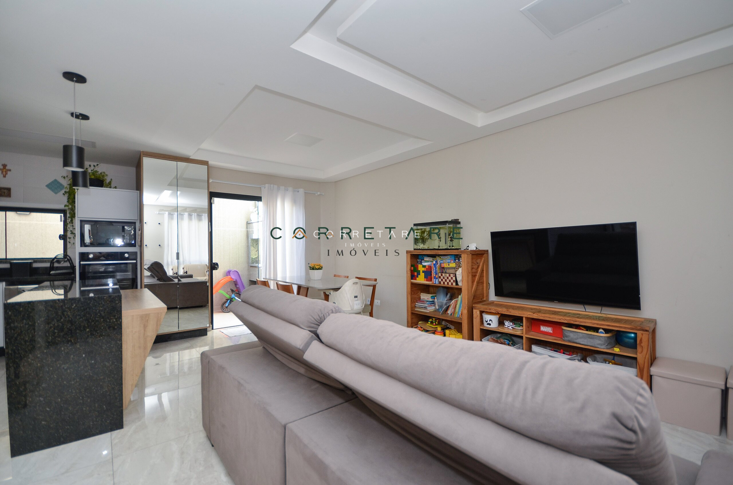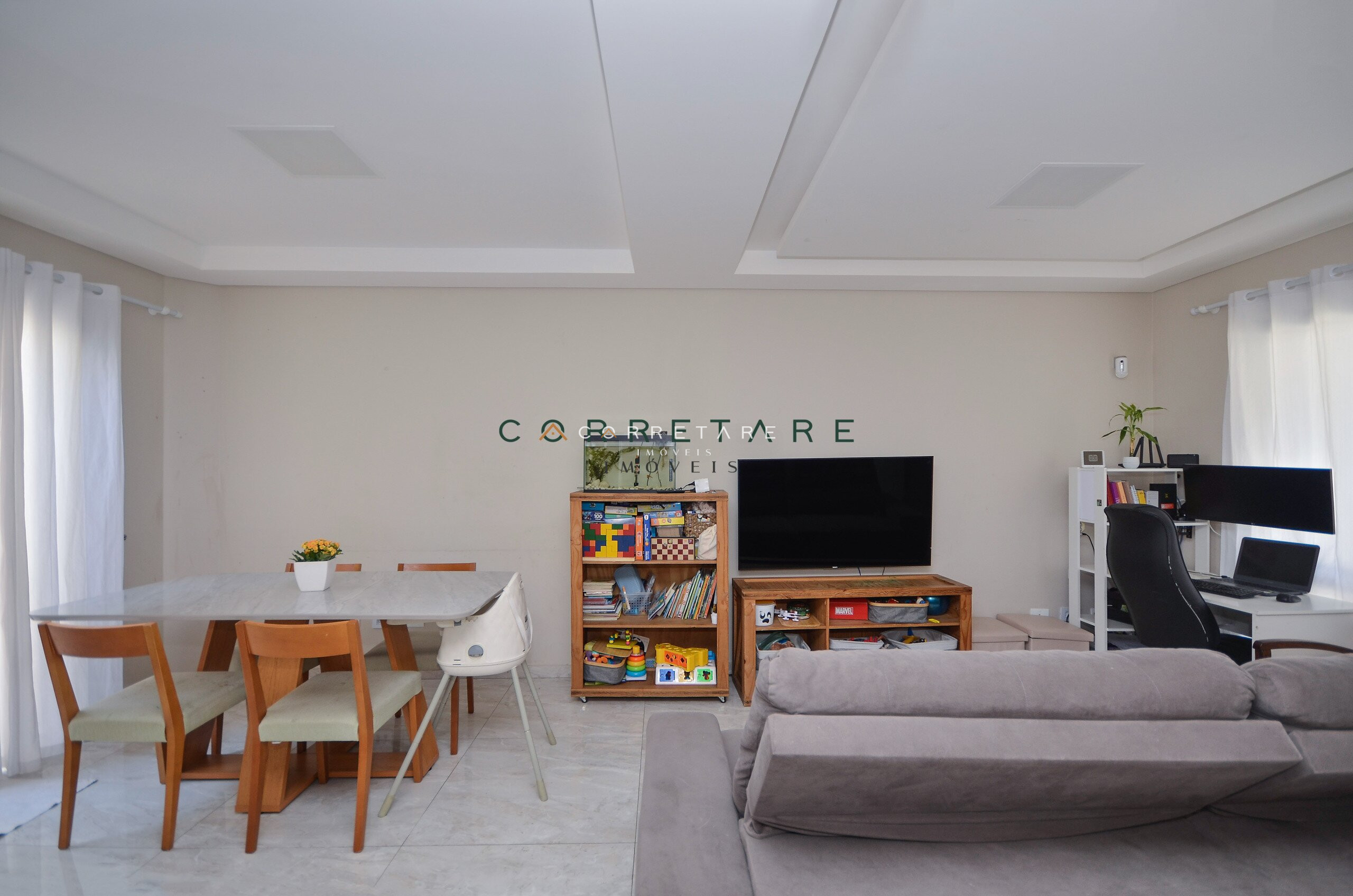 Sala de estar integrada à sala de jantar, proporcionando um ambiente perfeito para convivência;