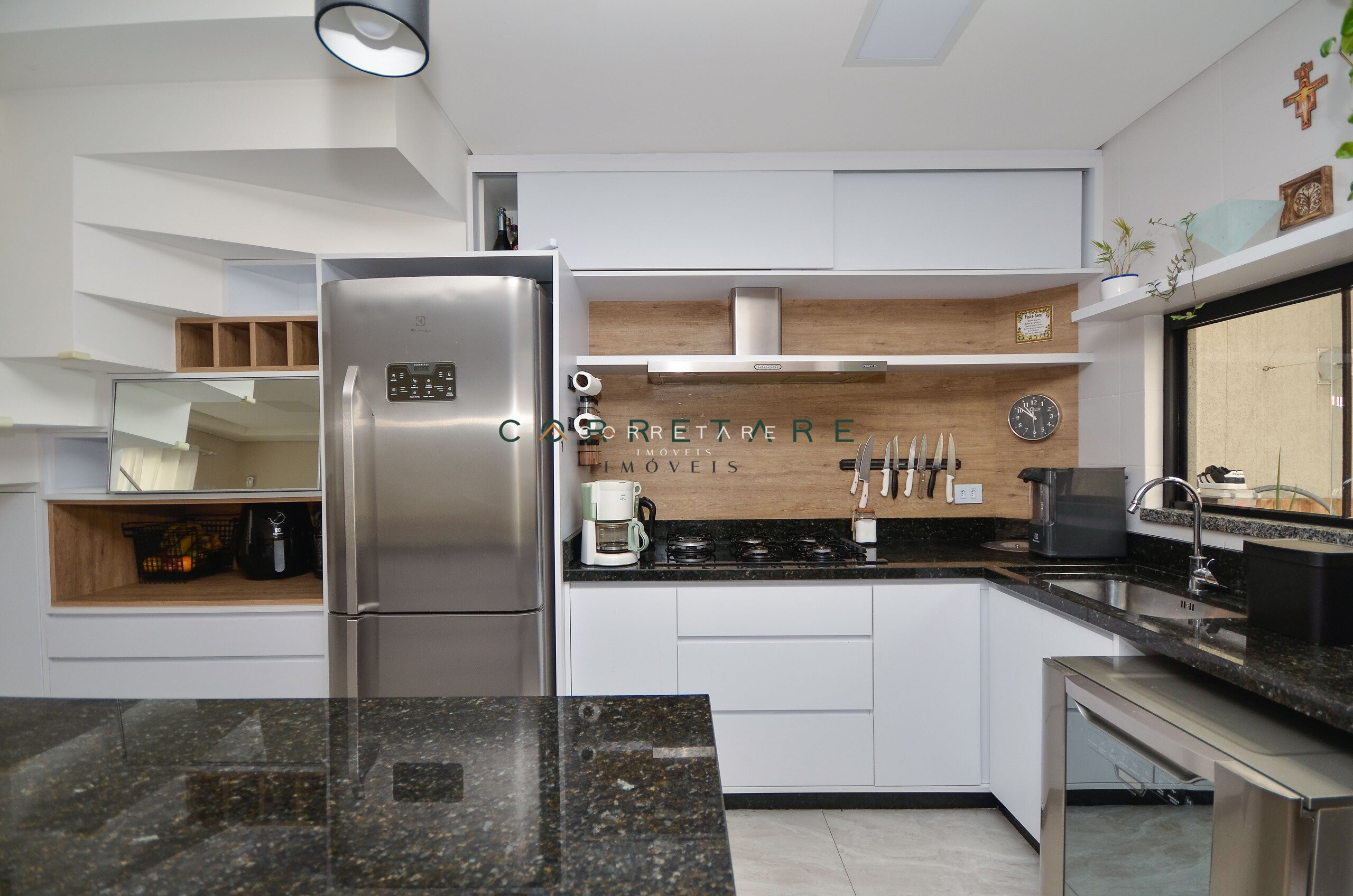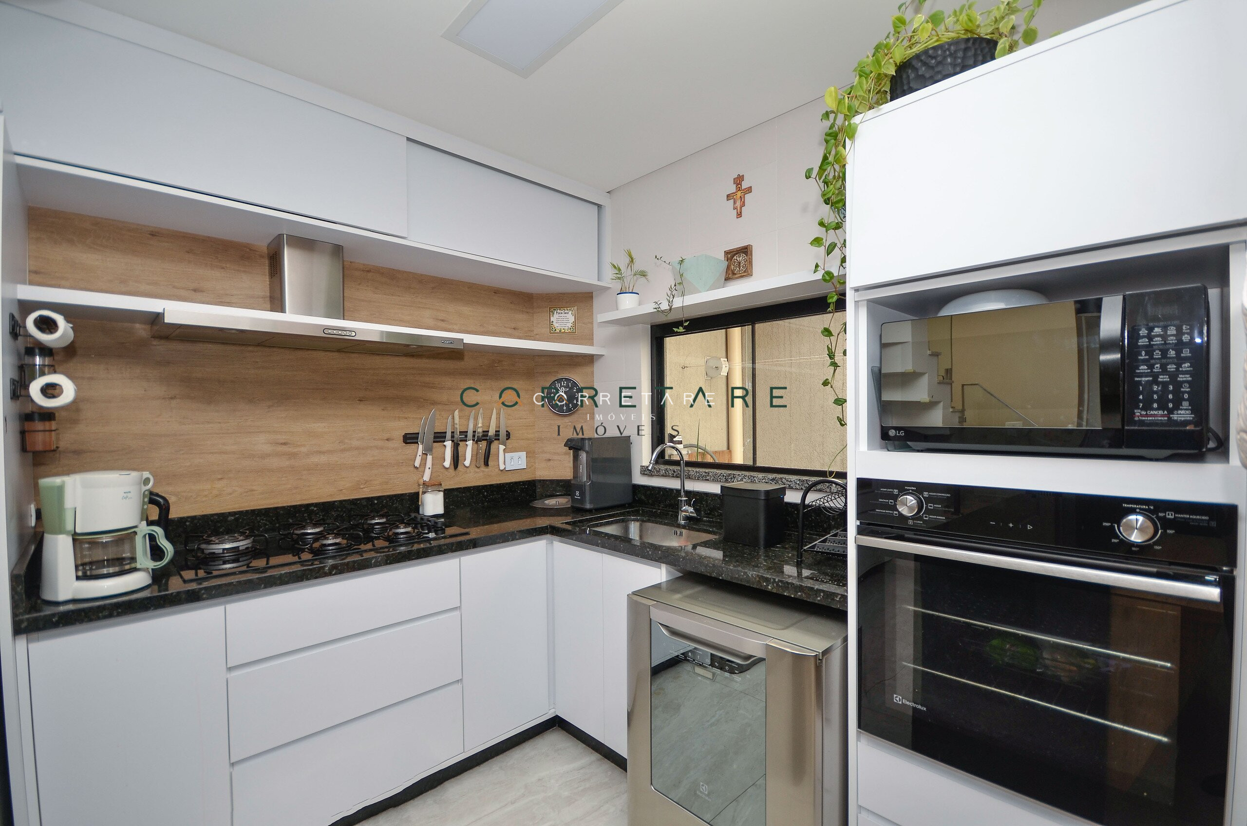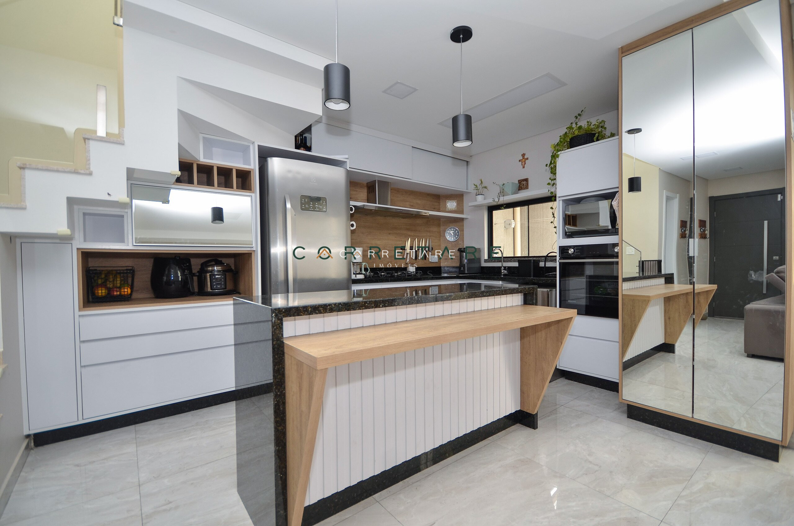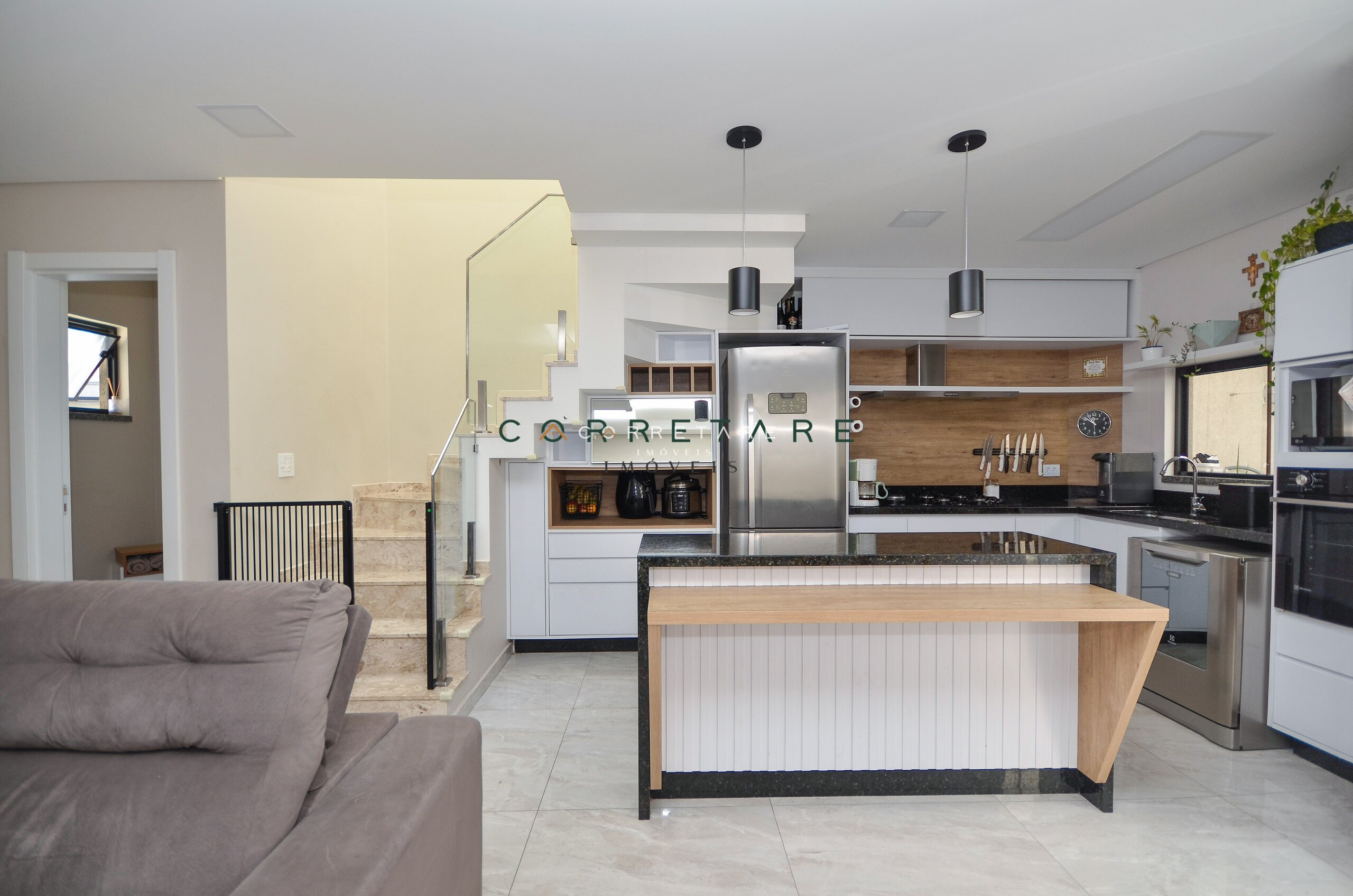 Cozinha mobiliada, prática e funcional;