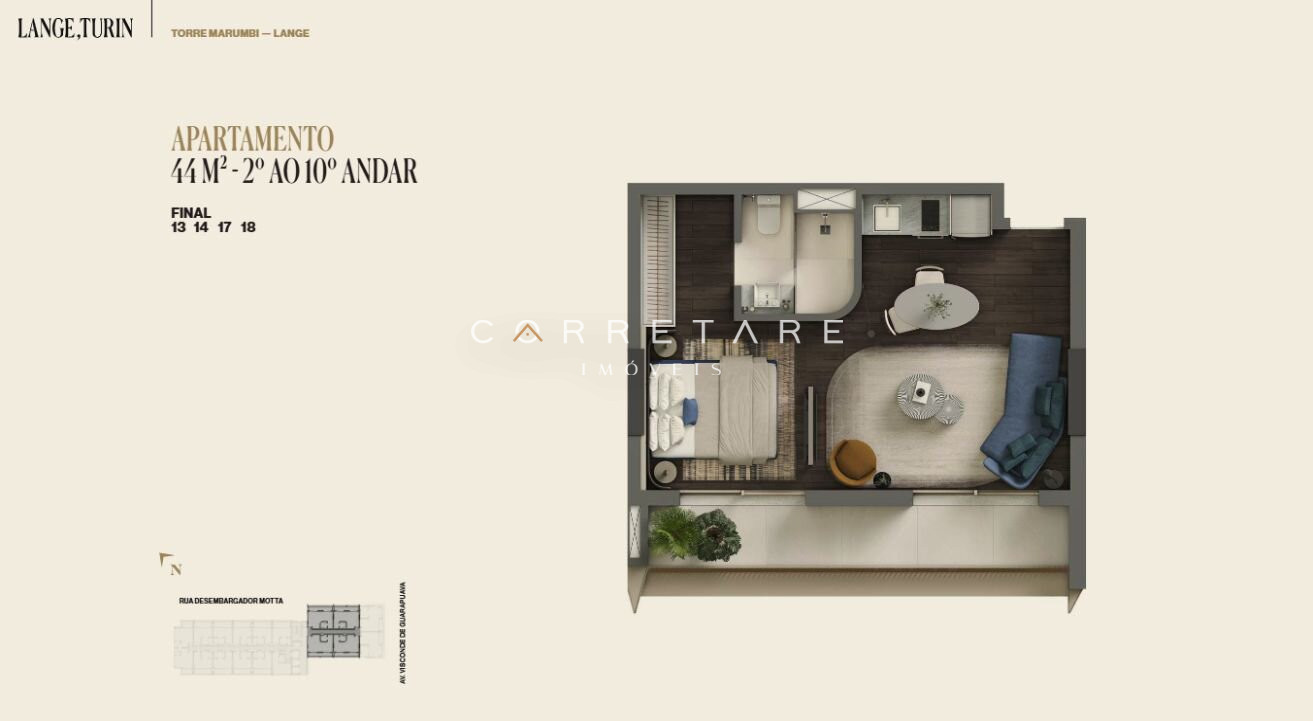 | Área privativa | 44,00 m² |