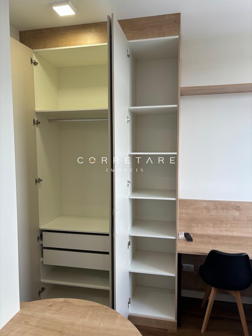- Móveis Planejados: Armários no quarto, cozinha e banheiro, além de um painel de TV.