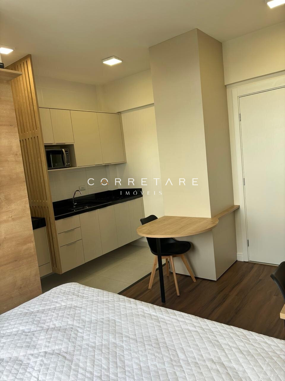 - Stúdio totalmente mobiliado, Geladeira, cooktop por indução, micro-ondas e tv, cama box com colchão.